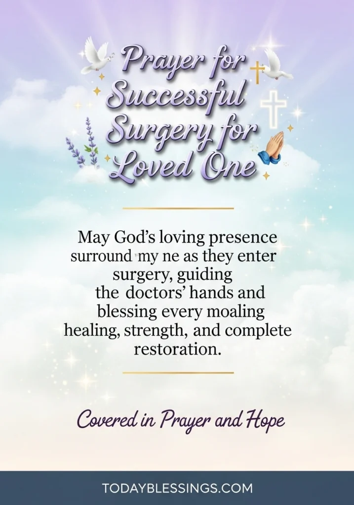 Heavenly Father, let Your love flow like healing waters today. May my loved one’s surgery be successful, their recovery swift, and their heart filled with peace and hope.