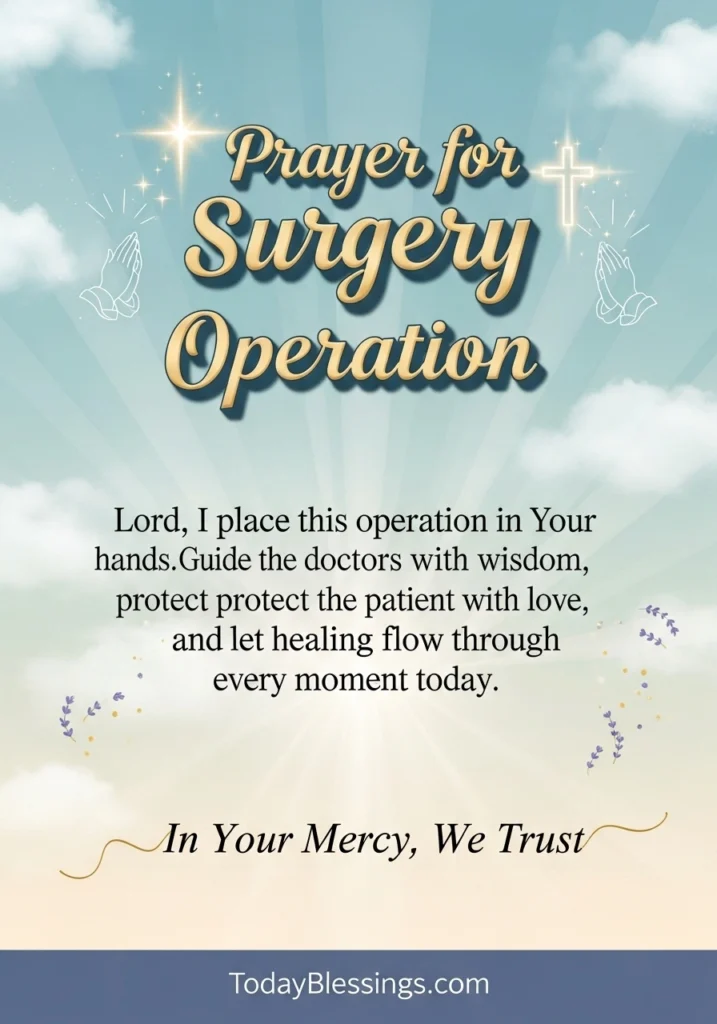 Lord, guide the surgeons’ hands today. May this operation bring relief, healing, and restoration, while the patient feels comfort in Your loving presence and peace.