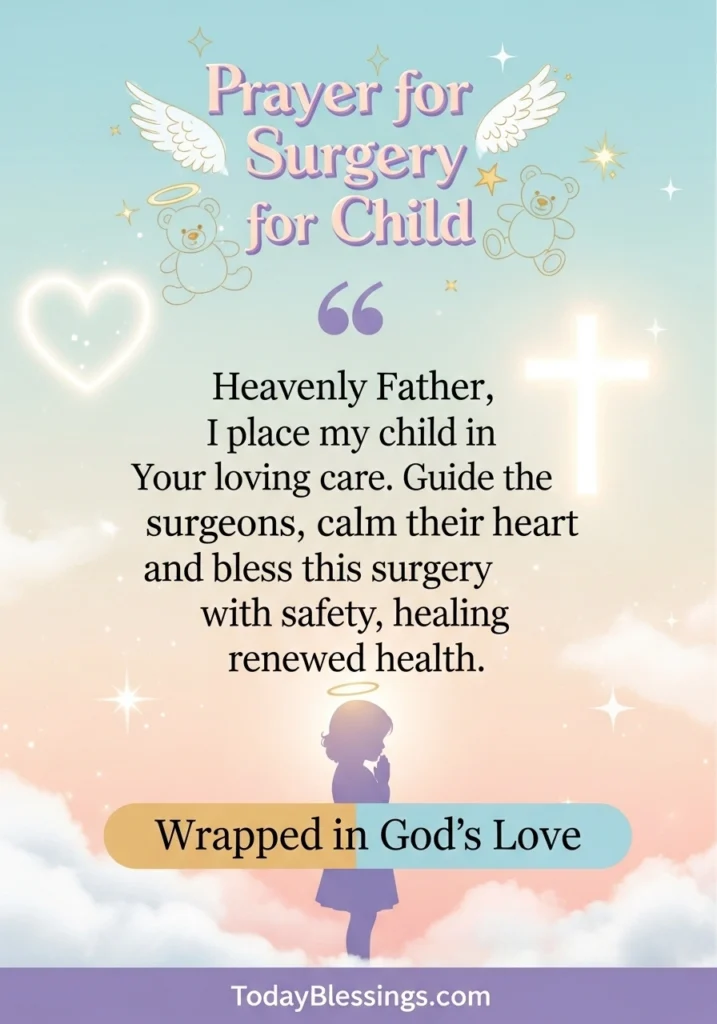 Lord, guide this surgery with precision and love. May every detail be covered by Your grace, leading to complete healing, peace, and restored strength.